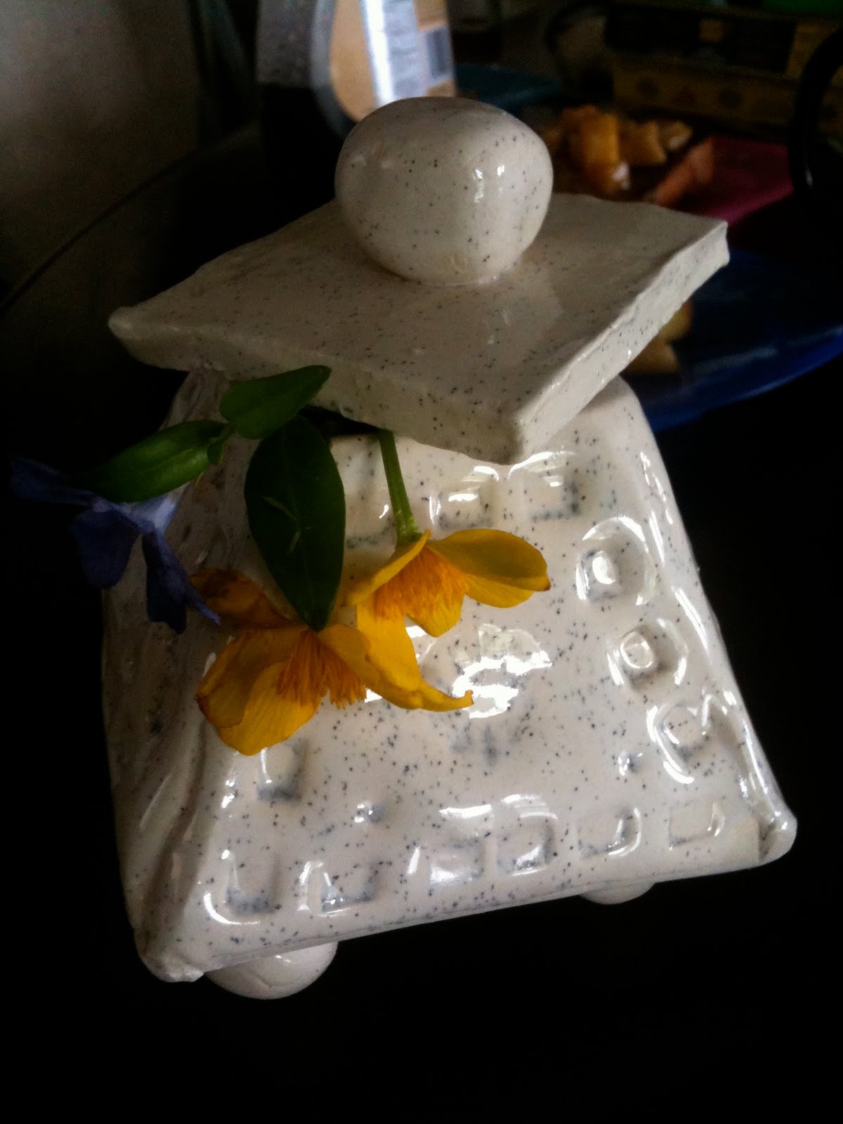 Then my kids surprised me with the things they made in school for me. I get a lot of paper crafts from school, 4 in the same elementary school… I have come up with some pretty creative ways to reuse and store all their amazing art treasures. My Missy made a wonderful gift this year. A clay pot. She did a spectacular job on it, don’t you think?! From my boys, hubby picked up a jumbo word search book (one of my favourite past-times) a hard cover journal, and a bunch of hot pink roses. My oldest boy hopped the fence to pick some fresh wild flowers from the forest behind our house. He was aiming for the wild Lilac bushes but they were too high for him.