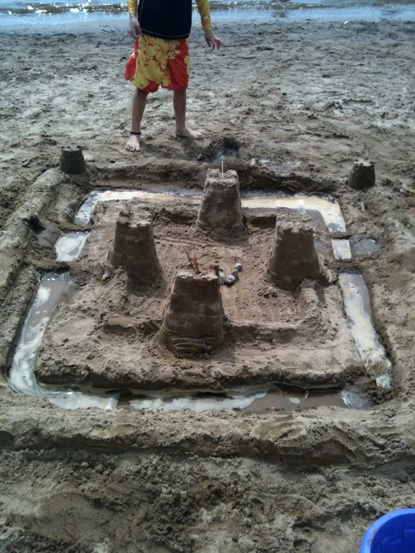 We ate lunch either in their hub, a place for hotdogs, burgers type food. Filling ourselves enough to want to flop down on the beach… soaking up the sun and digging in the sand. Yesterday they threw a beach party with cotton candy, a jumpy house and sand castle making contests. They finished up the party with a giant water balloon toss! That was cool!