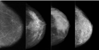 Far Left: Fatty Breast Tissue | Various Categories | Far Right: Extremely Dense